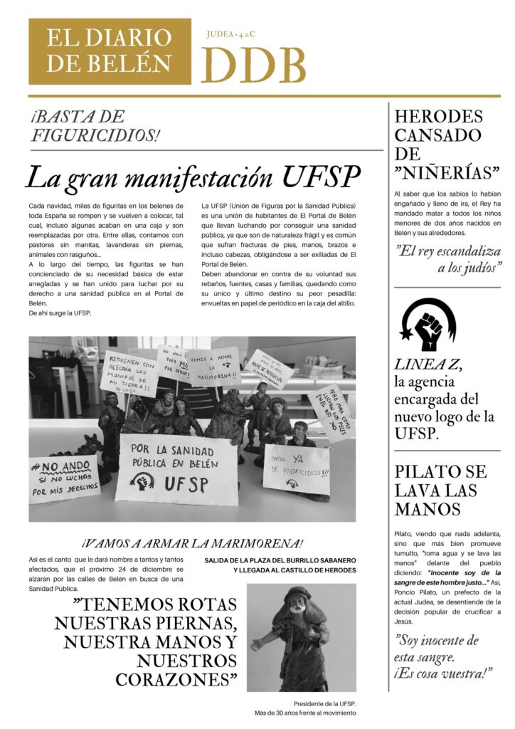 A lo largo del tiempo, las figuritas se han concienciado de su necesidad básica de estar arregladas y se han unido para luchar por su derecho a una sanidad pública en el Portal de Belén. De ahí surge la UFSP (Unión de Figuras por la Sanidad Pública).